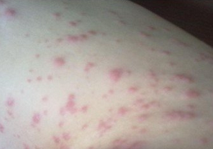 症状:起一片一片的小红点,突然红肿、发痒,出现疹子且慢慢扩大后成片,疹子在24小时,可分为急性荨麻疹、慢性荨麻疹、血管神经性水肿与丘疹状荨麻疹等。